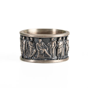 Inspired by gladiatorial iconography and Roman martial tradition, the band evokes honor, courage, and endurance, blending classical motifs with sculpted reliefs reminiscent of ancient coinage and heroism.