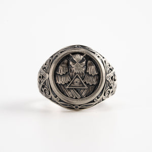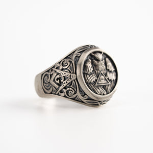 The owl of Athena evokes ancient wisdom and vigilance, while the all-seeing eye motif suggests spiritual insight and guardianship, uniting classical Greek heritage with discreet Masonic symbolism.
