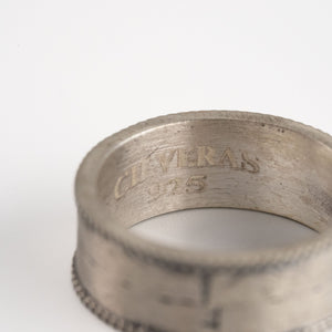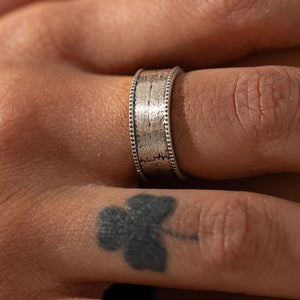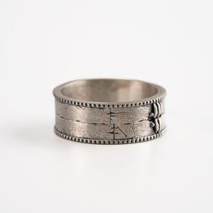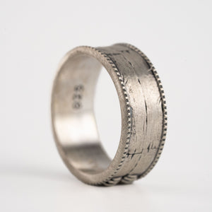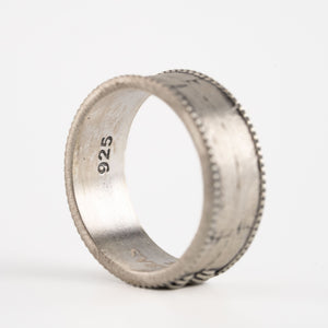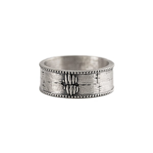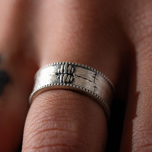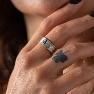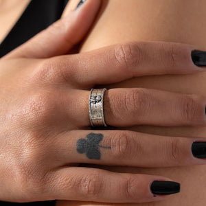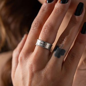 This ring features an intricate chunky structural profile, incorporating high-definition cracked rustic textures and a multi-dimensional band design. The design highlights professional-grade finishing techniques, creating a sharp visual contrast between high-polished surface highlights and specialized oxidized recesses that define the complex metalwork and brutalist-inspired elements. Engineered for a balanced weight and material integrity in 925 sterling silver, this accessory provides a refined contemporary look focused on technical execution and durable craftsmanship for consistent daily wear.