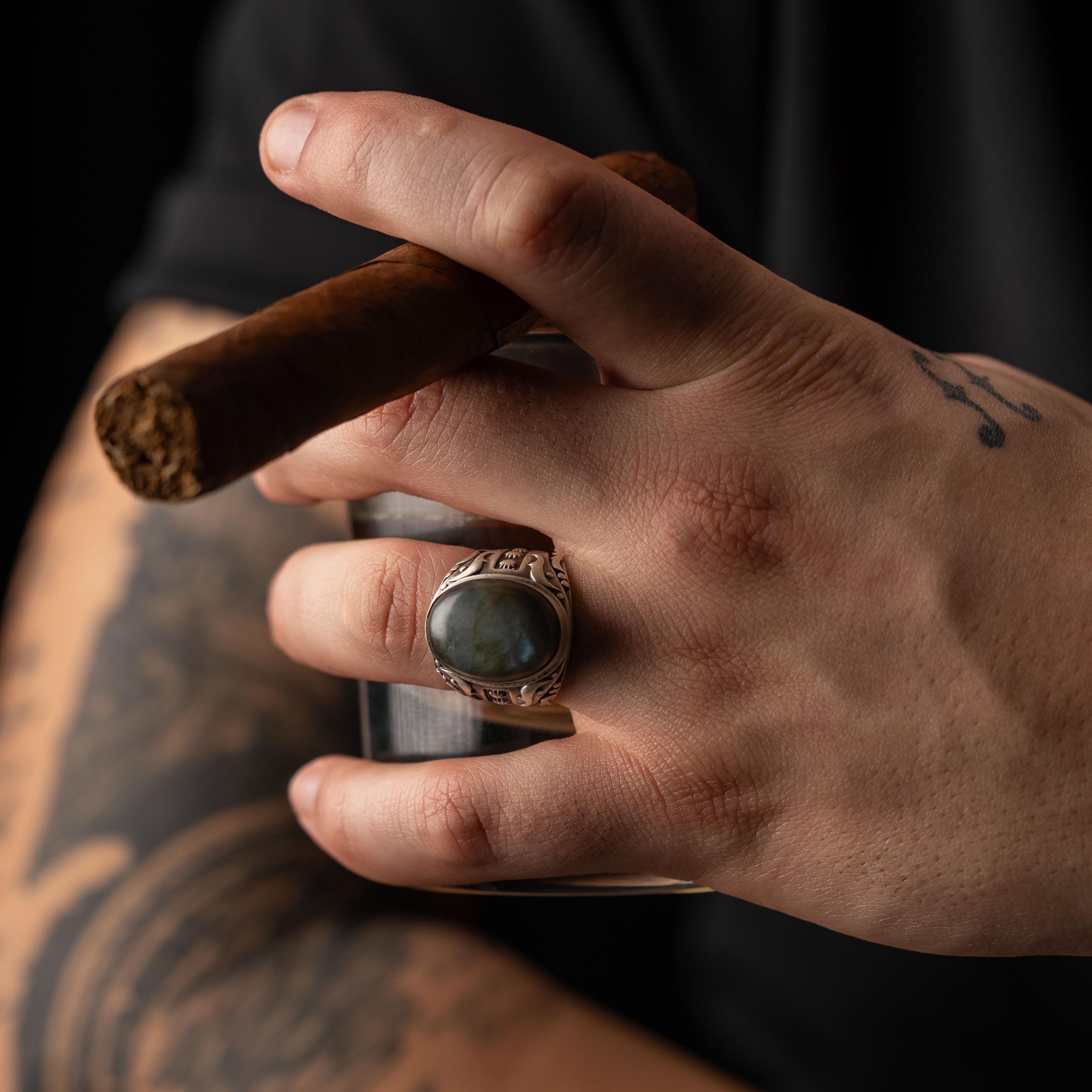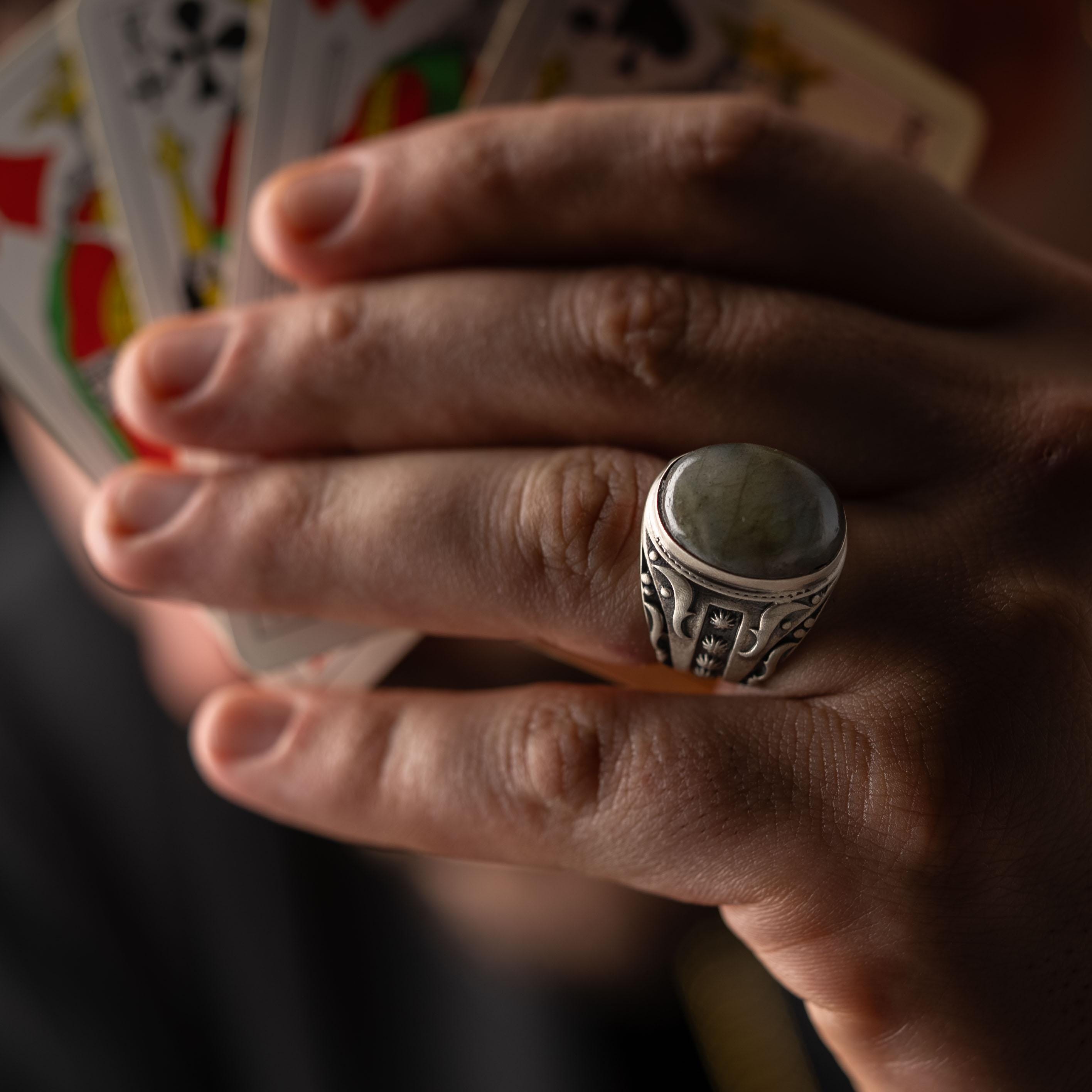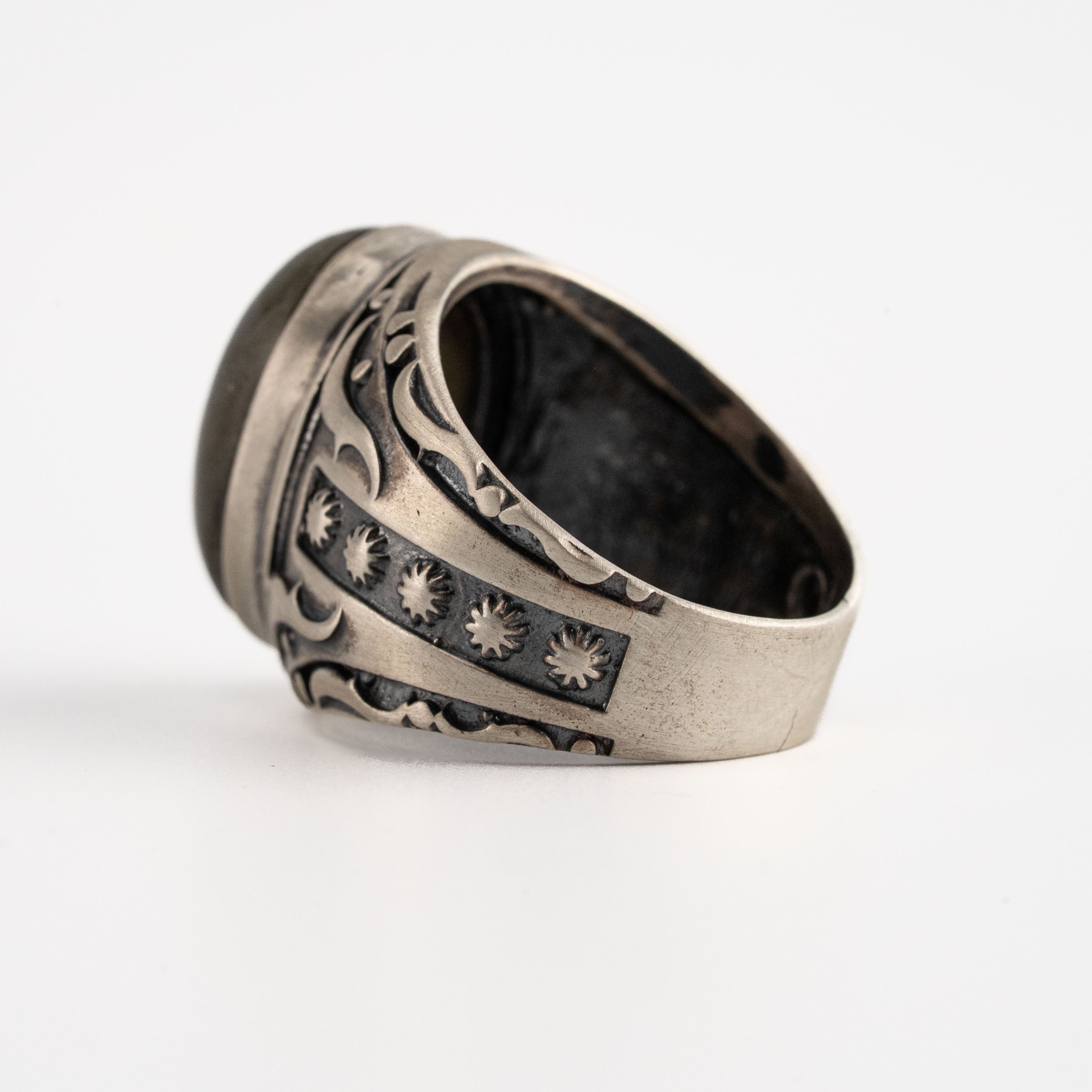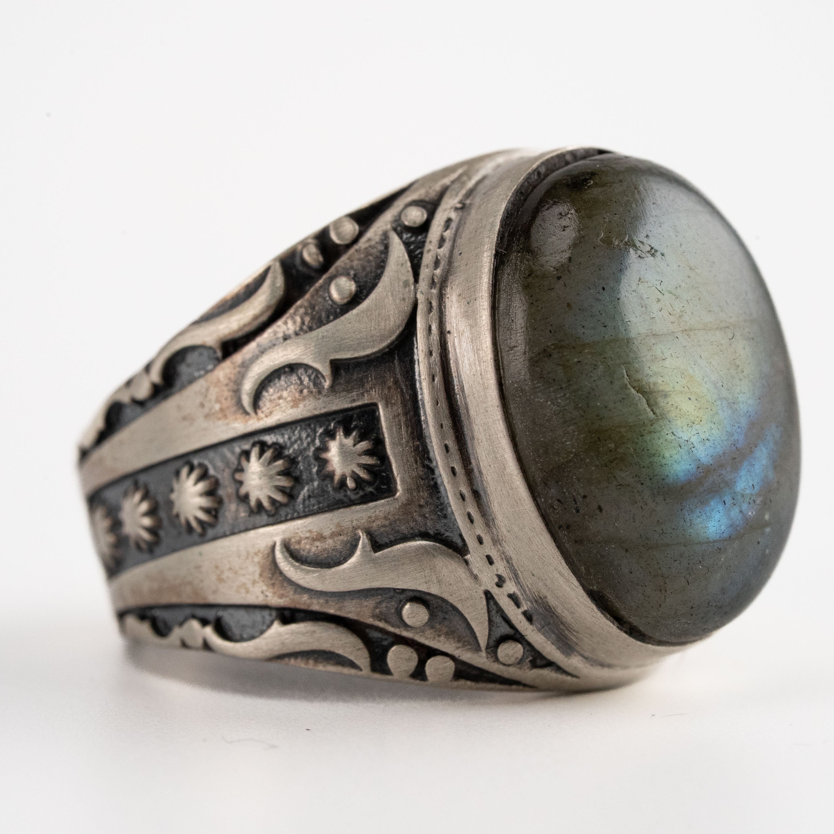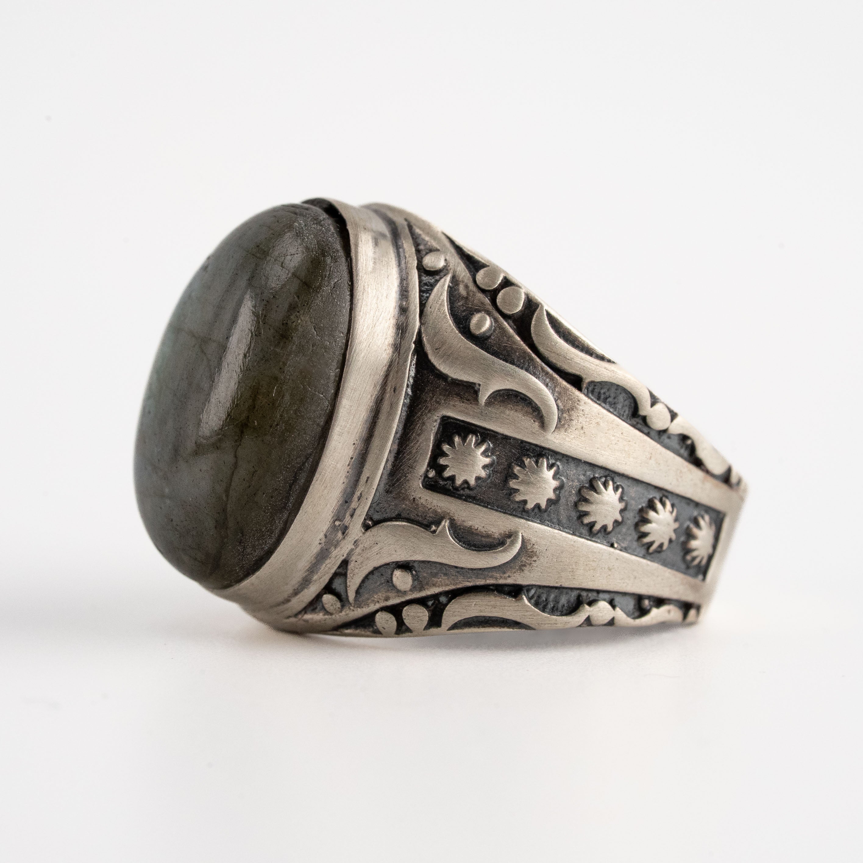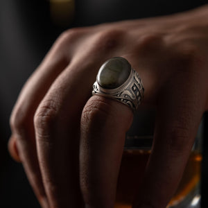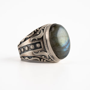 Labradorite Oval Relief Motif Ring