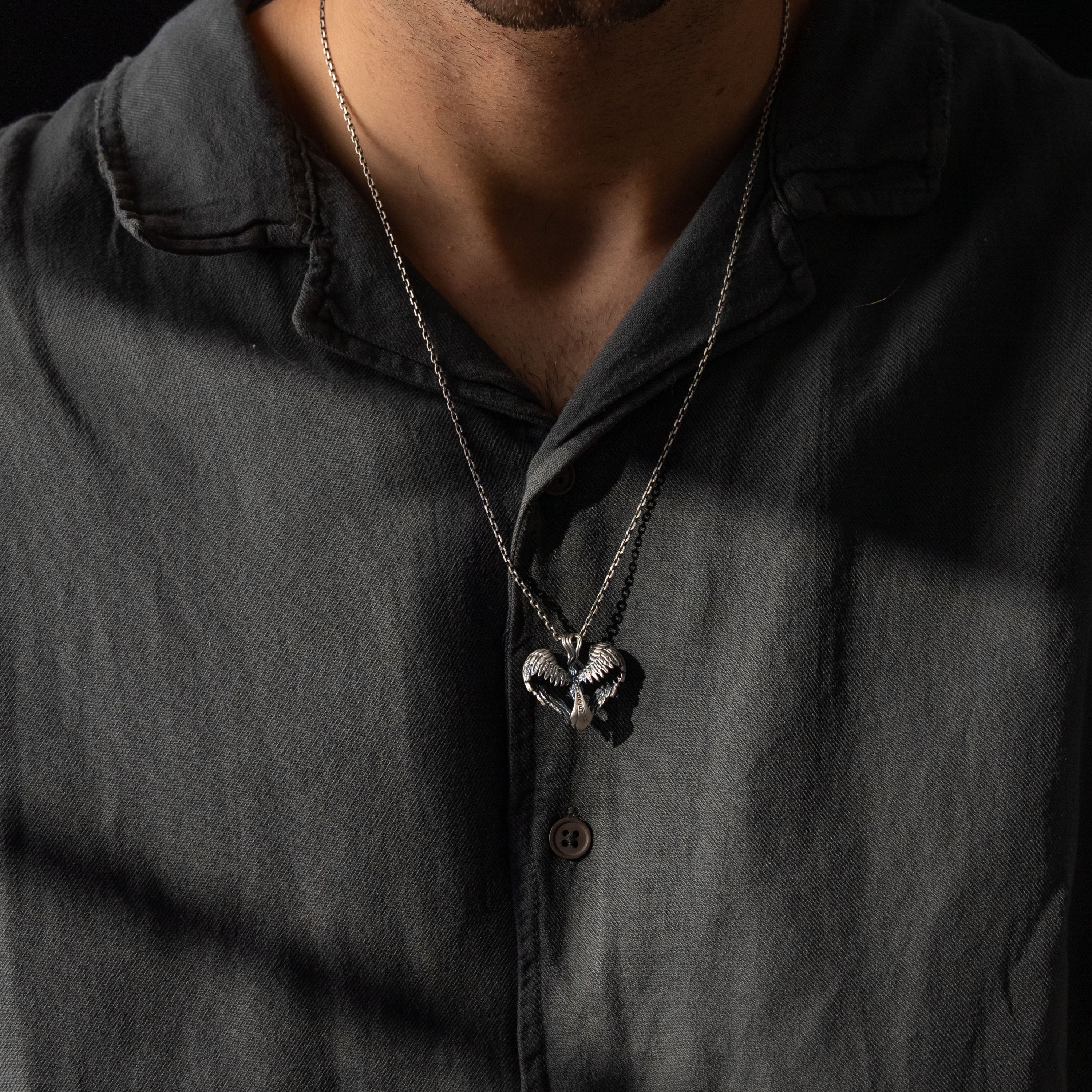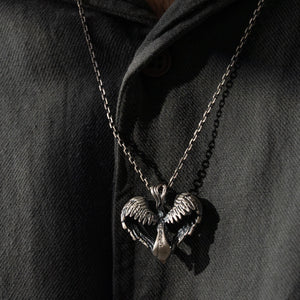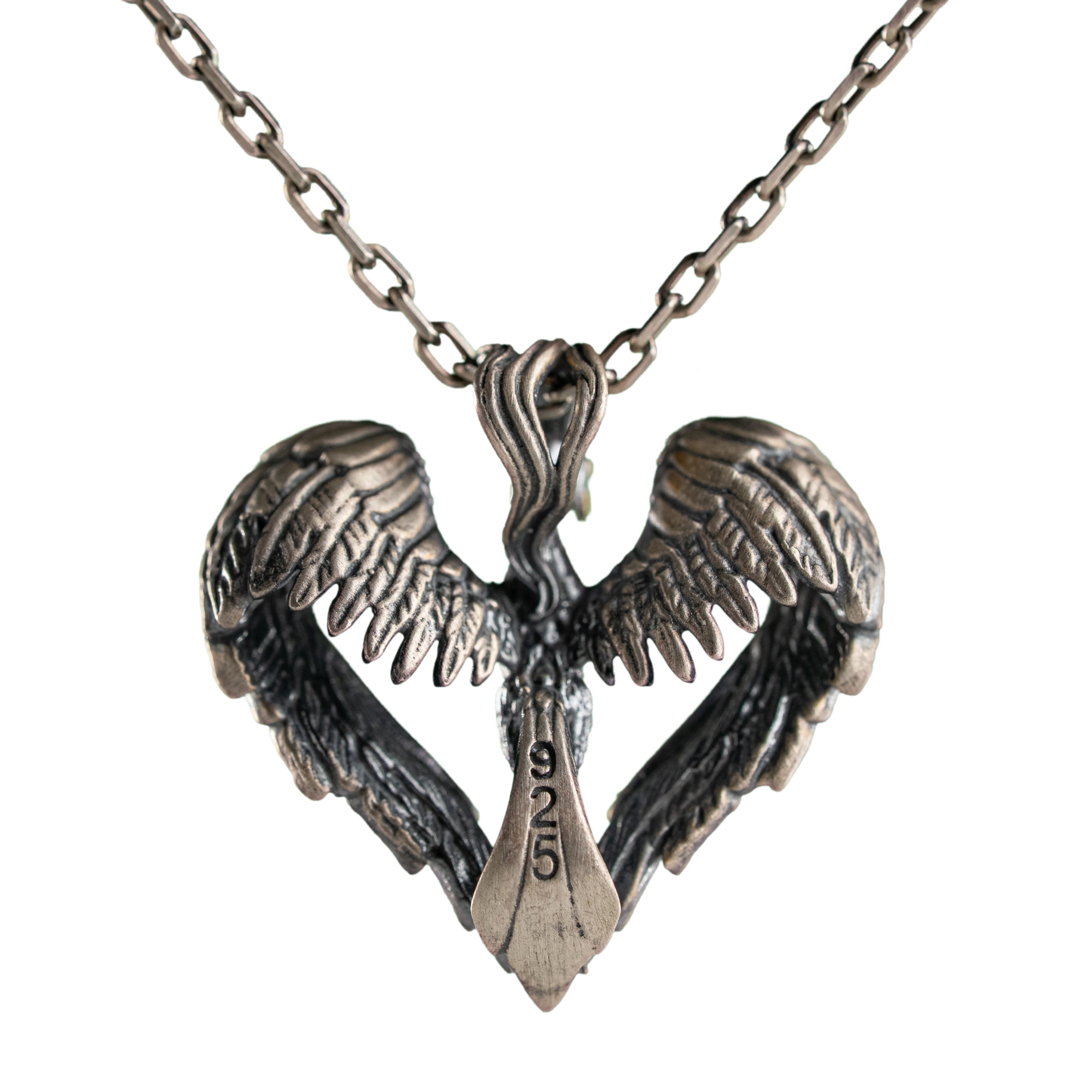 This necklace features an intricate avian motif characterized by expansive feathered textures and a multi-dimensional structural profile. The design highlights professional-grade finishing techniques, creating a sharp visual contrast between high-polished highlights and specialized oxidized recesses that emphasize the depth of the metalwork. Engineered for a balanced weight and comfortable daily wear, this accessory provides a refined contemporary look focused entirely on technical execution and architectural symmetry.