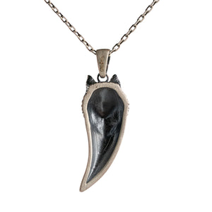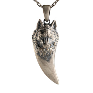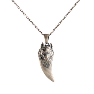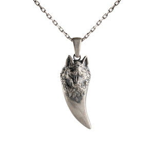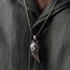 This necklace features a detailed figurative canine tooth motif with high-definition surface textures and a multi-dimensional structural profile. The design highlights professional-grade finishing techniques, creating a sharp visual contrast between high-polished surface highlights and specialized oxidized recesses that emphasize the intricate metalwork. Engineered for a balanced weight and material integrity, this accessory provides a refined contemporary look focused on technical execution and durable craftsmanship for versatile daily wear.