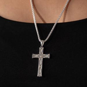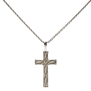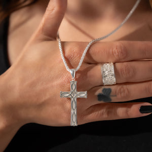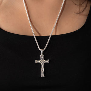 Handmade serrated cross pendant crafted with oxidized 925 sterling silver, merging gothic edge and refined polish; unisex design offers durable artisan detail and bold, wearable symbolism for everyday courage.