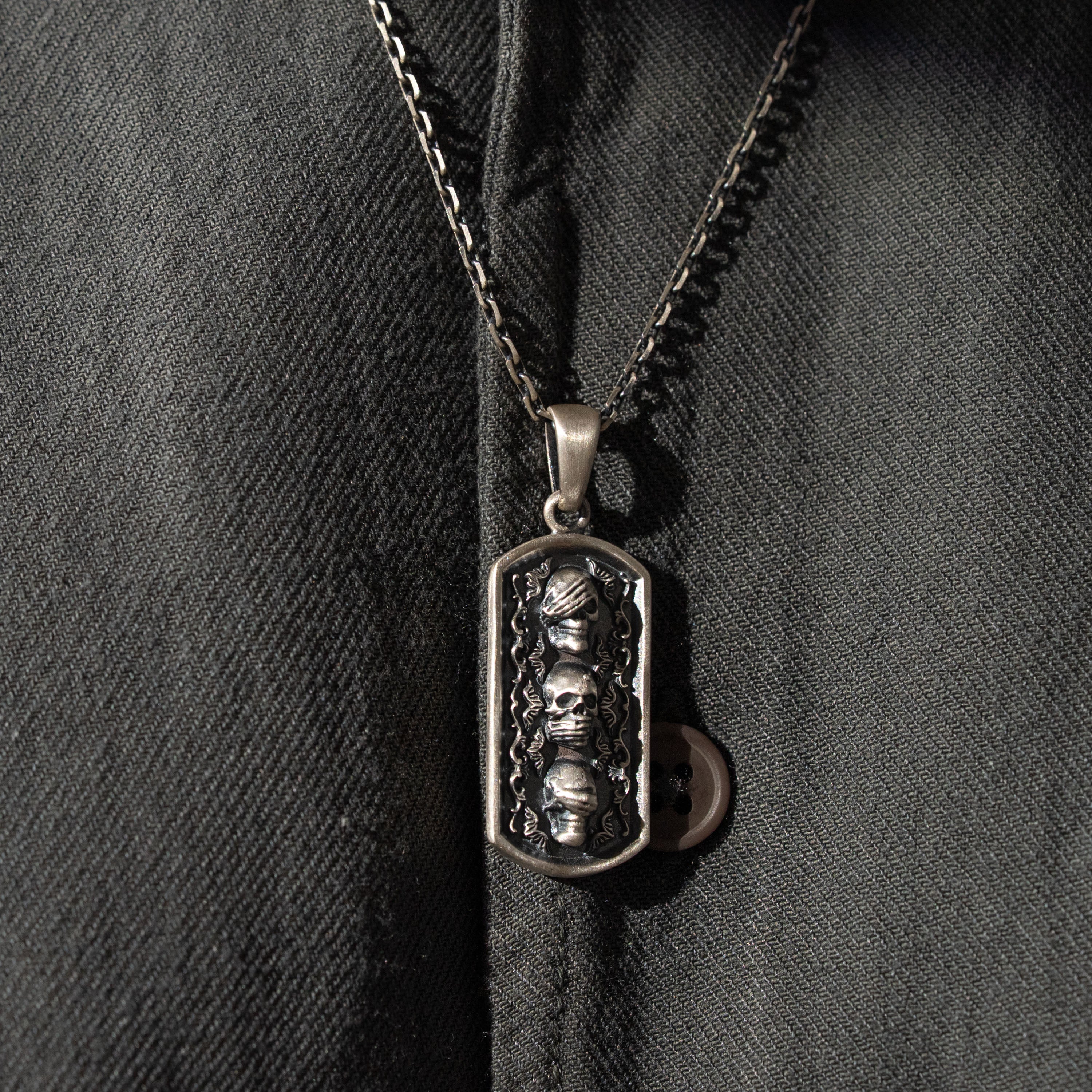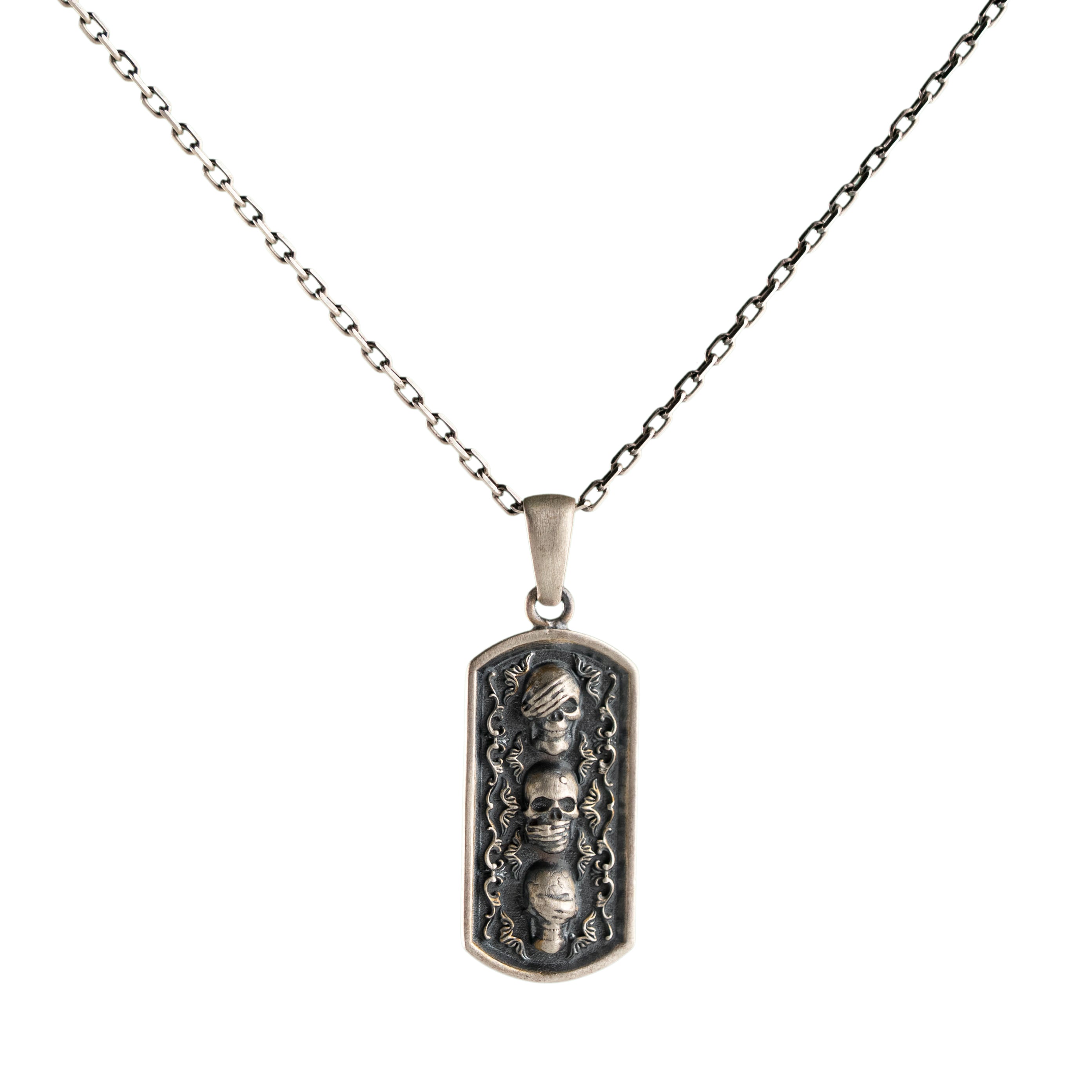 Three Wise Skulls Figurative Necklace