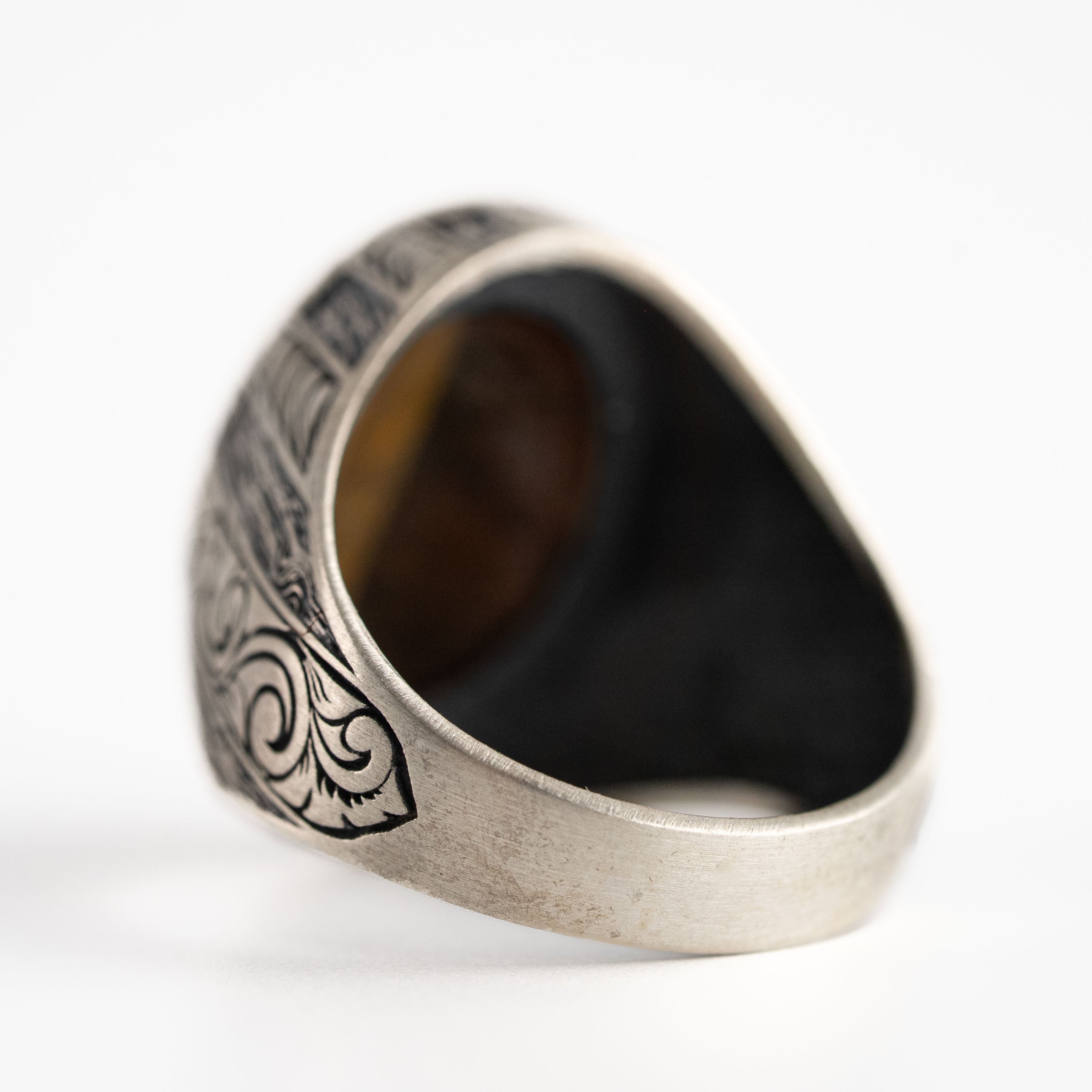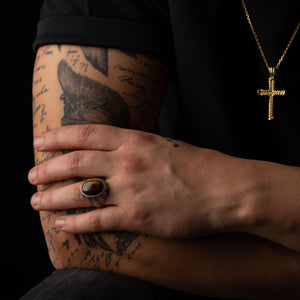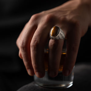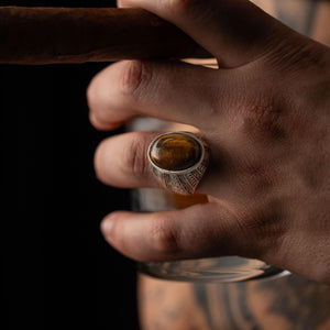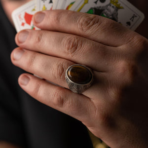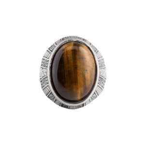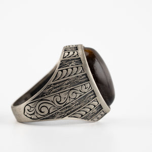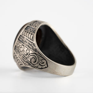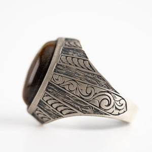 Tiger's Eye Floral Relief Motif Signet Ring