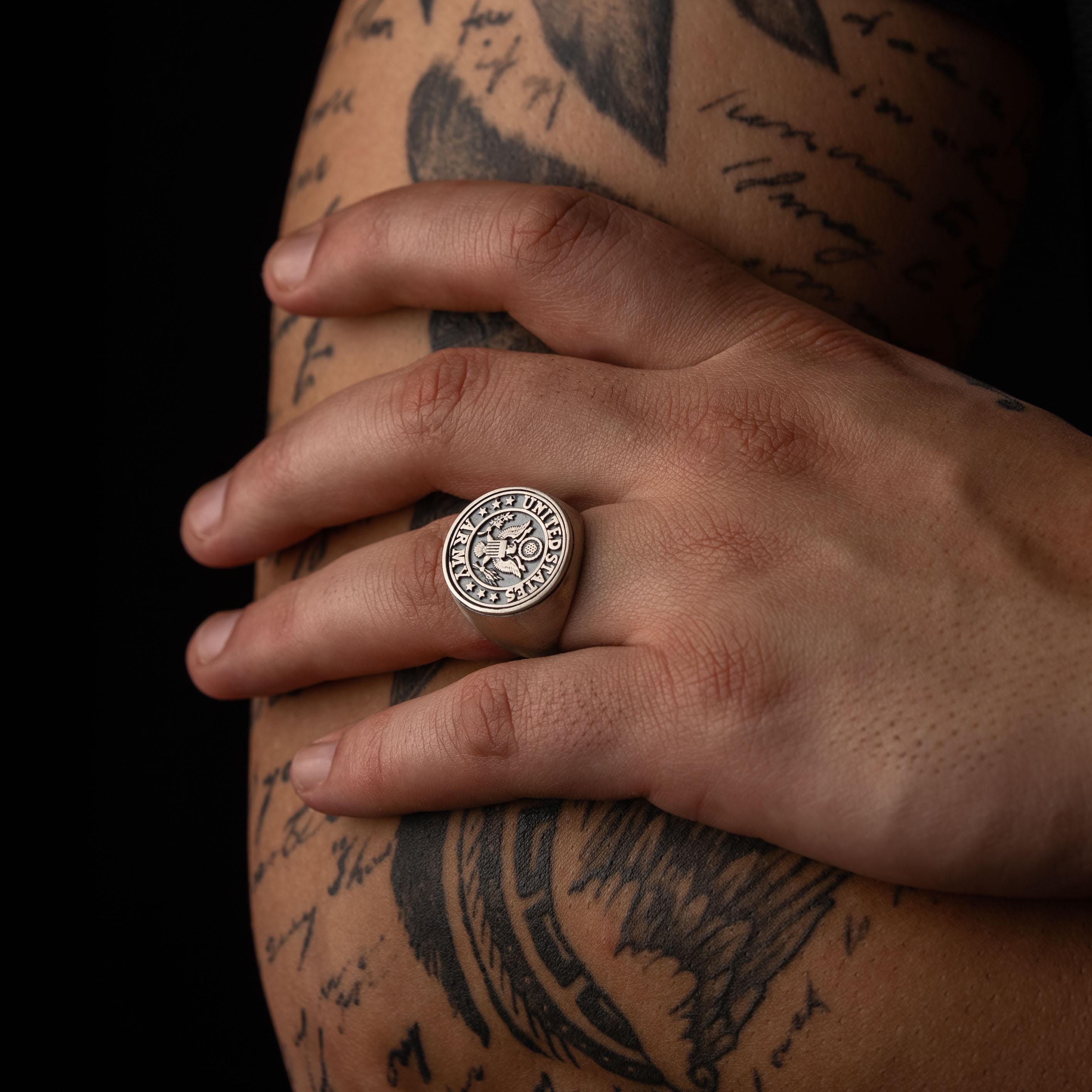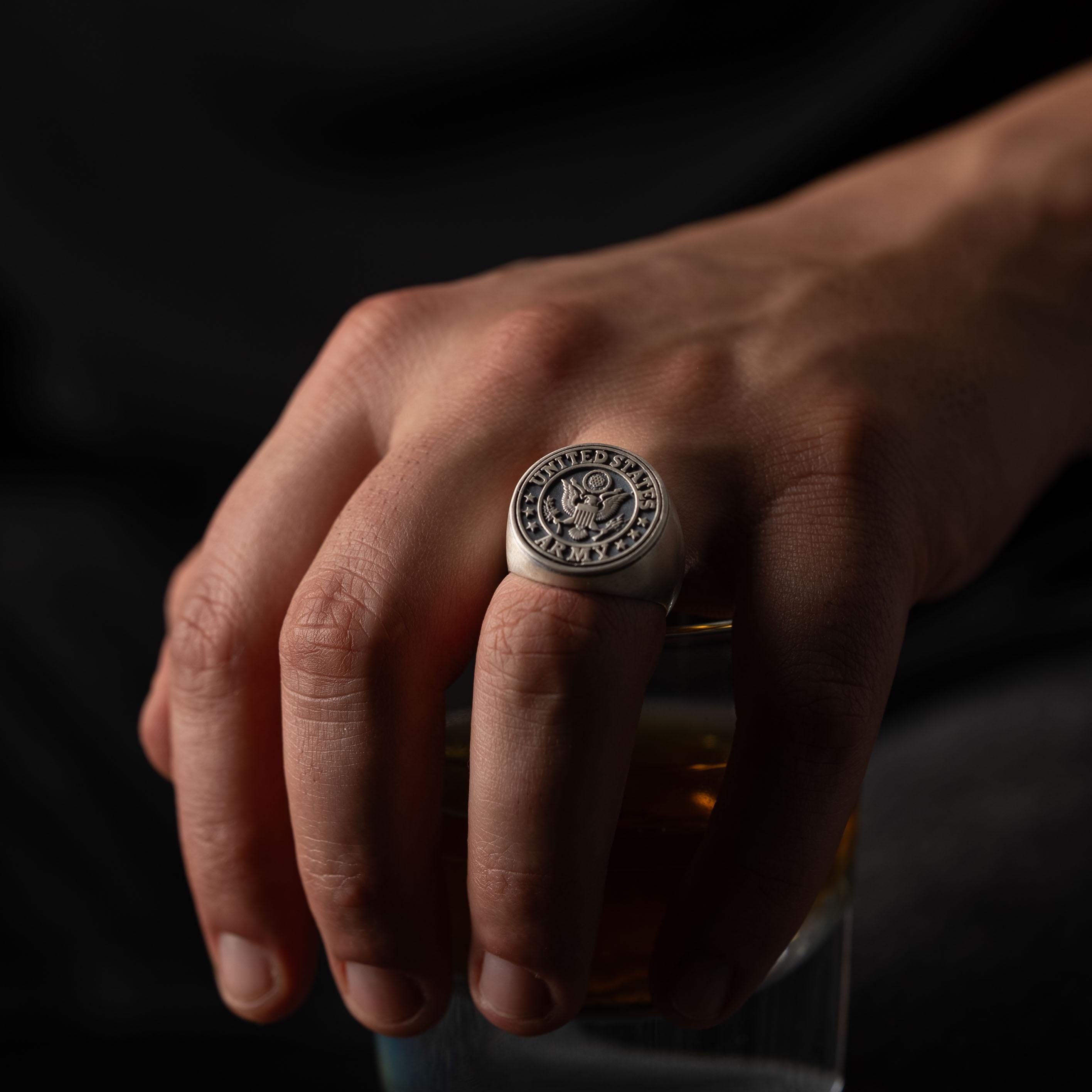 US Army Eagle Crest Relief Motif Signet Ring