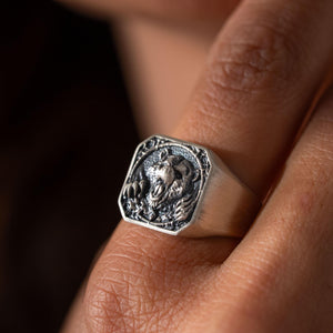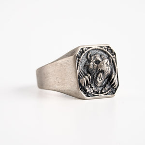 Viking Bear Relief Signet Ring