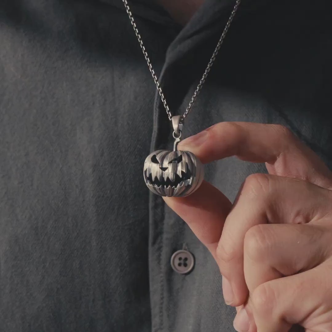 Spooky Pumpkin Power! 925 Sterling Silver Jack-O’-Lantern Necklace, Handmade Gothic Halloween Jewelry for Spooky Souls